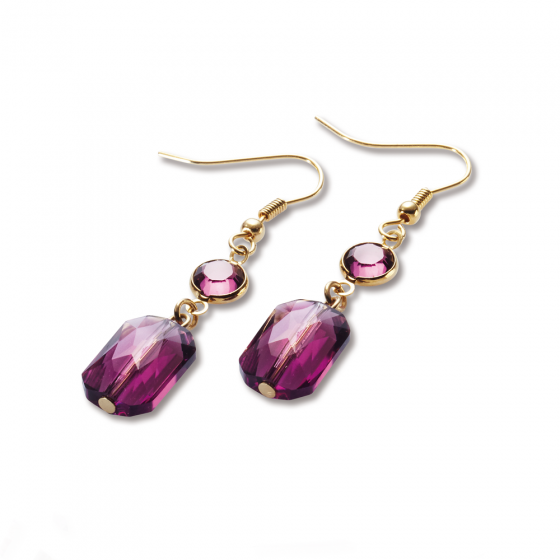 Stel u de glimlach eens voor, die ontstaat als uw partner dit mooie cadeau uitpakt. Met de SIERADENSET 'GRACE', bestaand uit collier en oorbellen, laat u echt elke vrouw stralen. De exclusieve juwelen zijn 24 karaat verguld en worden verfraaid door echte Swarovski-kristallen in de kleur amethist. Elke oorbel bevat een steen in vatting en een gefacetteerde kristalkraal, terwijl het filigraan verwerkte collier indruk maakt met 4 stenen in vatting en 3 gefacetteerde kristalkralen. De juwelen zijn ook afzonderlijk te bestellen. Lengte ketting: ca. 45 + 5 cm, lengte oorbellen: ca. 4,6 cm. Verklaar uw liefde met deze bijzondere set!