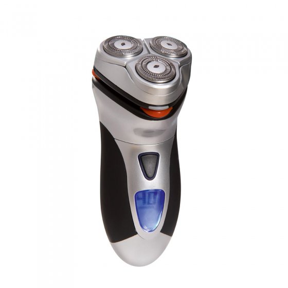 Het OPLAADBARE SCHEERAPPARAAT MET 3 SCHEERKOPPEN EN LCD zal u inspireren! Zijn scheermessen zijn dankzij de titaniumcoating corrosiebestendig en anti-allergeen - voor een fantastisch comfort, scheerbeurt na scheerbeurt. Verend gelagerde, dubbele roterende scheermessen volgen de gezichtscontouren tot op de millimeter. Voor zeer precies scheren, zelfs op moeilijke plaatsen. Met oplaadbare batterij voor maximaal 40 minuten snoerloos gebruik. Lcd-indicator geeft de batterijstatus weer en geeft aan wanneer u de opzetstukken moet reinigen. Reinigen onder stromend water. Uitschuifbare trimmer voor lange haren. Behuizing van slagvast ABS met "soft touch". Lengte: 13 cm. Wordt geleverd met lader en opbergtas.