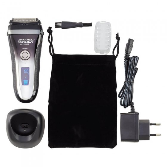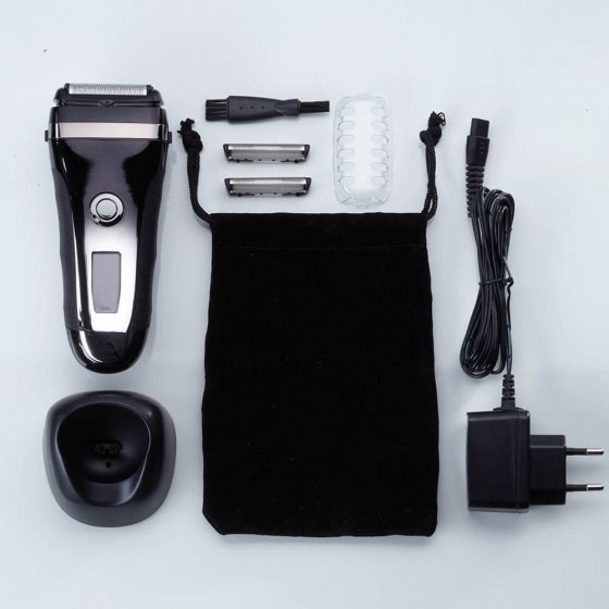 Het OPLAADBARE SCHEERAPPARAAT MET LC-SCHERM heeft 3 onafhankelijke scheerkoppen en scheert, terwijl het de huid ontziet: met tot 13.000 toeren/minuut pakken de beide verend gelagerde edelstalen mesjes meer baardharen in één keer op als een gewoon scheerapparaat. Dankzij de middelste, vaste scheerkop ook langere haren. Het LCD-scherm geeft informatie over de laadstand van de lithium-accu en tijdige reiniging en opladen (via het 230 V-oplaadstation). Een looptijd van 60 minuten is snel in slechts 90 minuten bereikt. Met antislip-rubber opzij en trimmer. Afm. (bxhxd): ca. 6x15x4 cm. Scheer u nu zachter, sneller en nauwkeuriger!