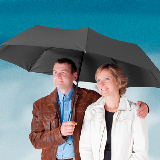 grote partnerparaplu, die opgevouwen zelfs in de tas past.