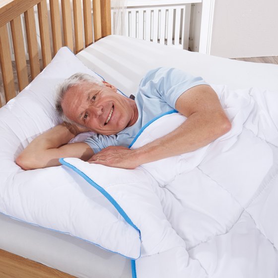 Quand la nuque est humide et le front couvert de sueur, l’oreiller TopCool améliore le confort et le sommeil en procurant de la fraîcheur. Le tissu TopCool hautement fonctionnel est particulièrement respirant et transporte l’humidité de manière optimale. En combinaison avec le garnissage de polyester, il accélère l’évaporation – l’oreiller sèche rapidement et reste agréablement souple. Dimensions (L x l) : env. 80 x 80 cm. Enveloppe : 100 % microfibre TopCool ; garnissage : 100 % polyester. Lavage machine (60 °C), compatible sèche-linge. Label Ökotex.
