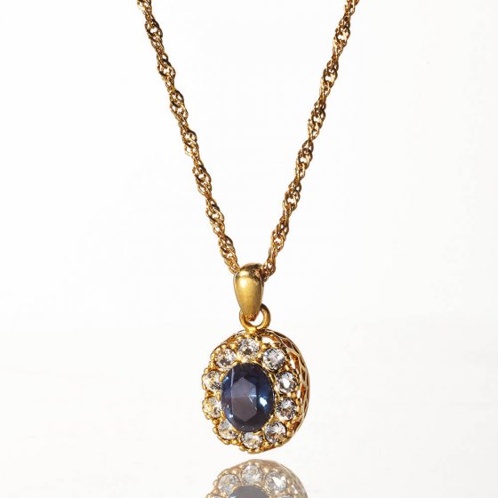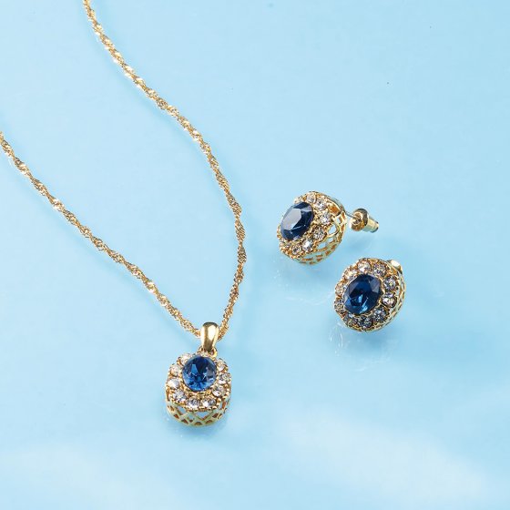 Les années 80 ont été marquées par le style royal – la PARURE DE BIJOUX "DIANA" est le premier favori intemporel dans la catégorie scintillante de bijoux historiques EUROtops. La combinaison intemporelle de la chaîne et des boucles d’oreille, avec un grand cristal bleu saphir entouré de 10 cristaux d’Autriche scintillants et un doré à l’or fin 999 (24 carats), flatte toutes les femmes qui ont le goût du style. Dimensions chaîne (L) : env. 45 + 5 cm. Boucles d’oreille (L x l) : env. 1,5 x 1 cm. Livrée avec certificat d’authenticité dans un bel écrin. Parfait pour la dame de votre cœur !