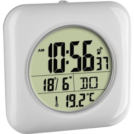 Depuis combien de temps êtes-vous dans votre bain ? Combien de temps vous reste-t-il pour vous raser et prendre votre douche avant l’arrivée de vos hôtes ? Pour qui veut garder un œil sur l’heure dans sa salle de bain, cette PENDULE NUMÉRIQUE RADIOPILOTÉE est parfaite :?elle se fixe simplement au moyen de 4 ventouses sur le carrelage mural – c’est prêt. Adhère sans percer ni coller ! (autre alternative :?à placer également sur une étagère ou un meuble). Cette pendule est adaptée aux pièces humides et affiche l’heure avec une précision d’horloge atomique. Affichage de l’heure, de la date, du jour de la semaine et de la température de la pièce. Fonctionne sur 1 pile LR 6 AA (disponible séparément). Dim. (L x l x H) : env. 9 x 17 x 17 cm. Pour rester toujours informé, même dans la salle de bains !