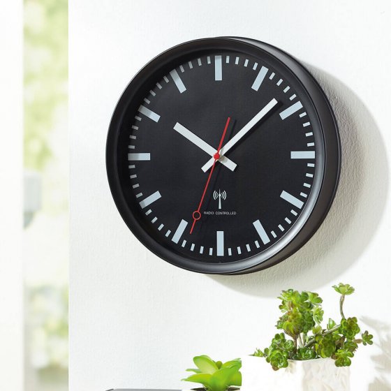 Vous cherchez une pendule murale analogique mais sans tic-tac gênant ? Dans ce cas, la PENDULE RADIO-PILOTÉE SILENCIEUSE est juste ce qu’il vous faut ! Avec son mouvement silencieux à balayage, les secondes ne s’écoulent pas de manière saccadée mais par un mouvement continu de la trotteuse sur le cadran – il n’y a donc pas de tic-tac exaspérant. Le design d’horloge de gare à coloration négative contrastée rend la lecture de l’heure aisée, le module récepteur DCF77 garantit une précision extrême. Fonctionne avec une pile AA (vendue séparément). Boîtier en plastique Ø : env. 25 cm, épaisseur du boîtier : env. 4 cm. Enfin une horloge qui ne fait pas tic-tac... !