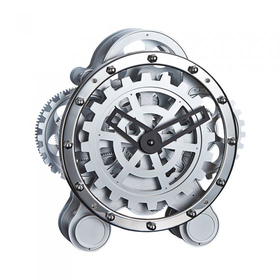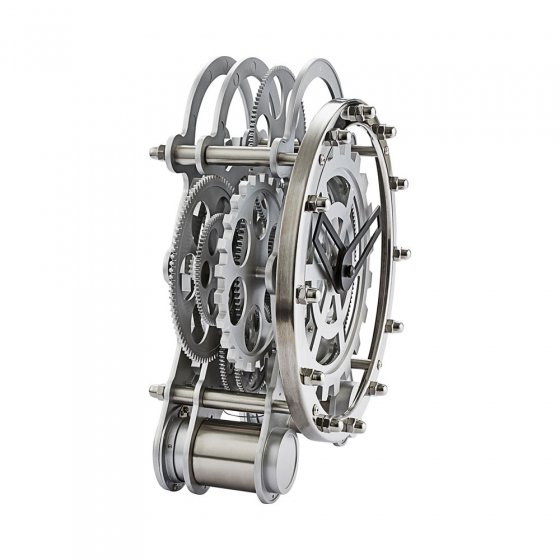 Fabriquée à partir de 52 éléments unitaires et pesant plus de 1 kilo, cette PENDULETTE “SQUELETTE” est non seulement une montre mais également un objet de déco fascinant qui décore parfaitement votre bureau, votre composition ou votre enfilade. Les 17 roues dentées entraînent les aiguilles et sont en mouvement perpétuel. Avec son échelle en hélice sur le cadran, cette pendule illustre parfaitement le temps qui passe. La pendulette fonctionne sur un mouvement précis à quartz. Fonctionne sur 2 piles LR 20 (disponibles séparément). Avec aiguilles des heures et des minutes. Dim. (L x l x H) env. 24 x 10 x 26 cm, Poids : 1,2 kg. Une pendule sous le signe du temps qui passe !