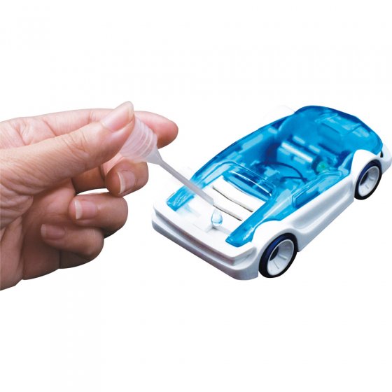 Le pétrole est une énergie fossile en voie de disparition, c’est un fait. Et ce ne sont pas les alternatives énergétiques qui manquent, mais sont-elles efficaces ? Testez-les vous-même ! Notre PETITE VOITURE "MARLIN" á l´eau de mer en kit vous apporte la preuve qu’avec des "ingrédients" de base, il est possible de produire de l’énergie électrique : une petite lamelle en magnésium, une goutte d’eau du robinet et un peu de sel suffisent pour faire avancer ce petit bolide en plastique de 35 g à peine. Au bout d’environ 15 minutes, l’eau est consommée et il vous suffit alors de remplir de nouveau le réservoir pour la faire avancer. Sa lamelle d’aluminium lui permet d’avancer pendant quatre heures au total ; trois lamelles sont incluses dans la livraison. Et si vous souhaitez que votre petite voiture n’aille pas seulement tout droit, vous pouvez construire un circuit à l’aide de rails en plastique trouvés dans le commerce pour encore plus d’amusement. Dimensions du véhicule : env. 8 x 4,1 x 1,7 cm. Mobilité et durabilité s’unissent pour votre plus grand plaisir !