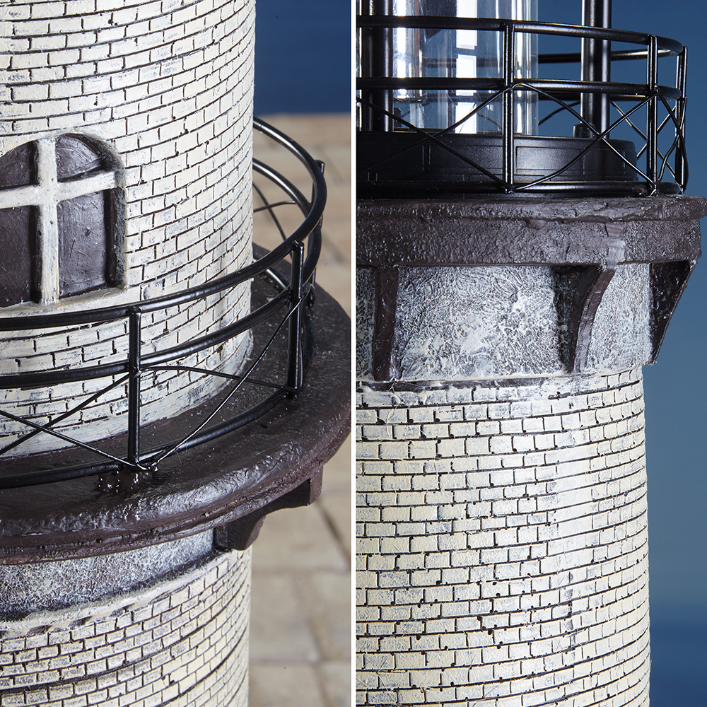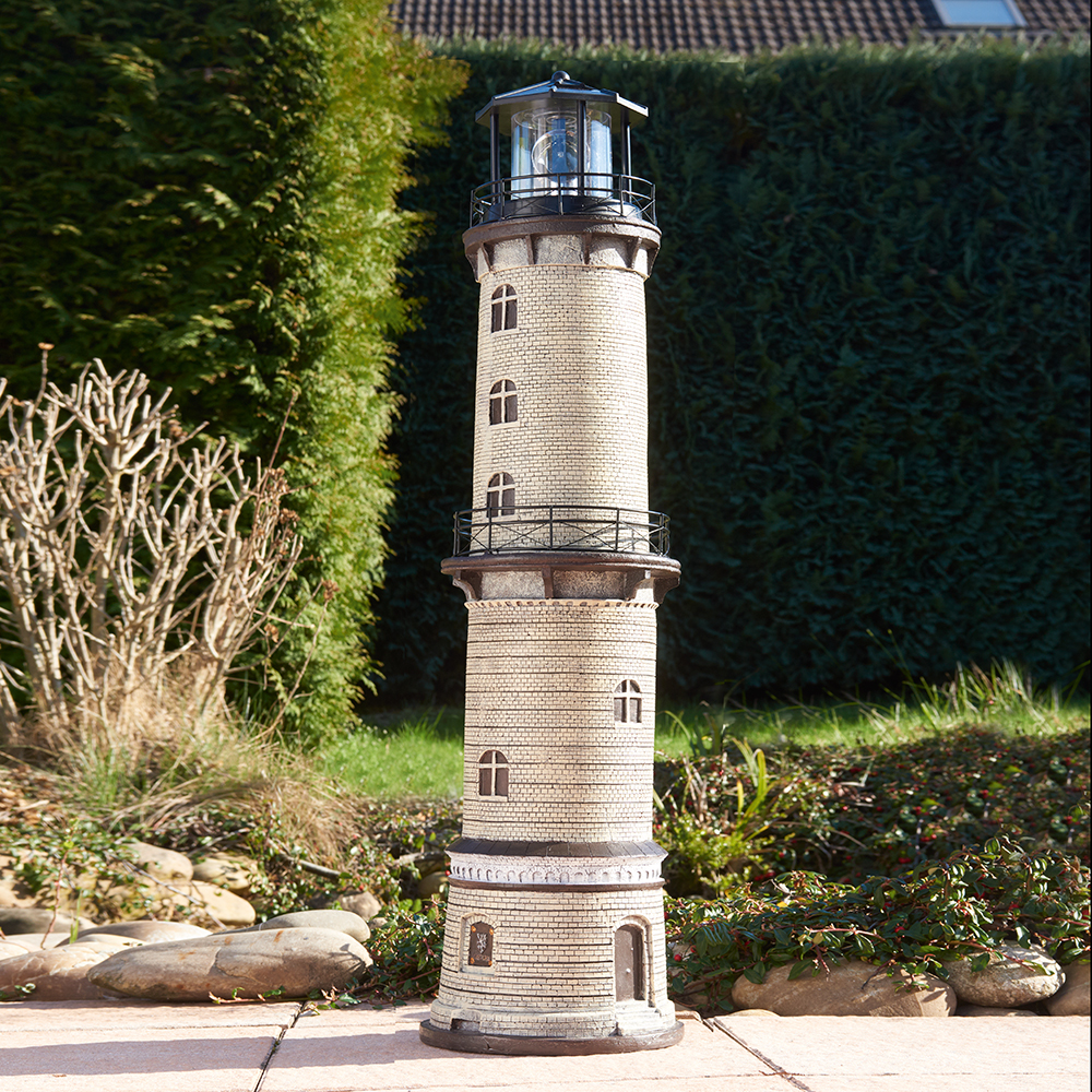 Le phare de Warnemünde est actif depuis 125 ans. Mis en service en 1898, cet emblème de la ville hanséatique de Rostock attire chaque année jusqu'à 100.000 visiteurs. Avec le PHARE SOLAIRE « WARNEMÜNDE » vous pouvez profiter de l'attraction de ce monument impressionnant pour enjoliver votre jardin ! Le modèle, peint à la main avec un bel aspect patiné, séduit avant tout par ses deux galeries fidèles à l'original et les éléments des portes et fenêtres soigneusement travaillés avec le souci du détail. Le feu LED s'allume le soir par capteur crépusculaire (durée d'éclairage à pleine charge de batterie : env. 6–8 h). Dimensions (Ø x H) : env. 24 x 88 cm. Mettez un vrai monument dans votre jardin !