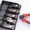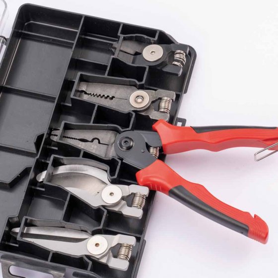 Pour le bricolage, on n'a jamais trop de pinces : on en a besoin pour tenir, presser, couper, tirer, dénuder et bien plus encore. Au lieu d'un tas de modèles différents, vous avez désormais uniquement besoin de la PINCE À TÊTES INTERCHANGEABLES de Profi-Partner, en version améliorée. Au lieu de 5 embouts, cet ensemble en réunit 6 en un seul exemplaire ! Le changement se fait sans outil en quelques secondes, et les embouts tiennent fermement. Vous économisez ainsi de la place, et aussi le temps passé à chercher l'outil qui convient. Longueur de la pince sans embout : env. 16 cm. Très pratique et parfait pour vos projets ! Six fonctions, un outil – pour faire plus vite et plus facile !
