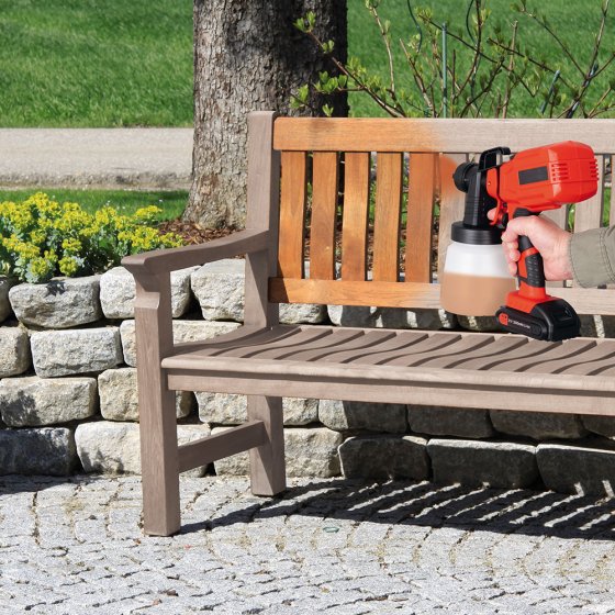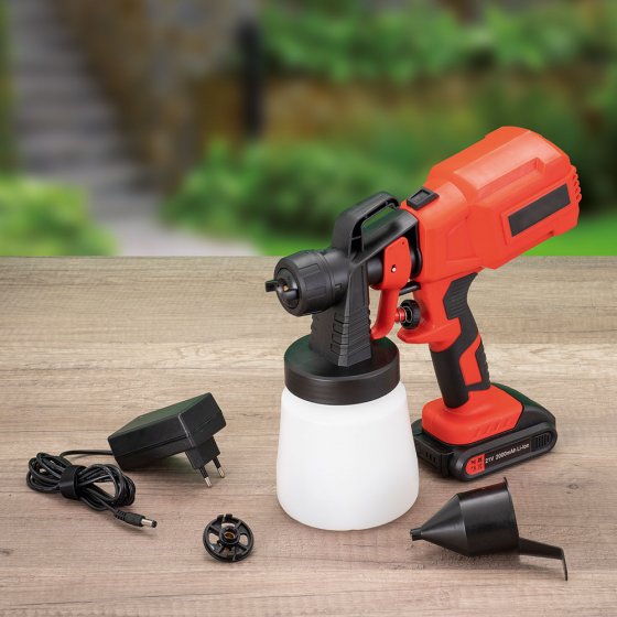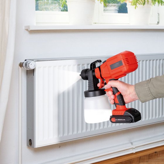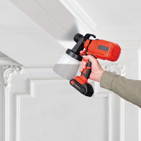 Plus de flexibilité, une plus grande portée et jusqu'à 10 fois plus vite qu'avec un pinceau : avec le PISTOLET DE PEINTURE RECHARGEABLE pratique, vous appliquez des vernis, des peintures, des lasures ou des huiles à l'intérieur et à l'extérieur de manière précise et uniforme en un rien de temps. Choisissez la taille de la buse et le type de jet souhaité et appuyez sur un bouton pour commencer. Avec un débit allant jusqu'à 180 ml/minute, vous teintez les plafonds en stuc, les radiateurs, les bancs de jardin ou les clôtures de manière absolument uniforme et sans laisser de traces de pinceau. Fonctionne sur une batterie 20 V Li-Ion (fournie). Dimensions du pistolet (L x H x P) : env. 29 x 26 x 11 cm. Vous prévoyez un projet plus important ou vous aimez les couleurs ? Commandez en même temps la batterie supplémentaire pratique ainsi que le godet à peinture supplémentaire !