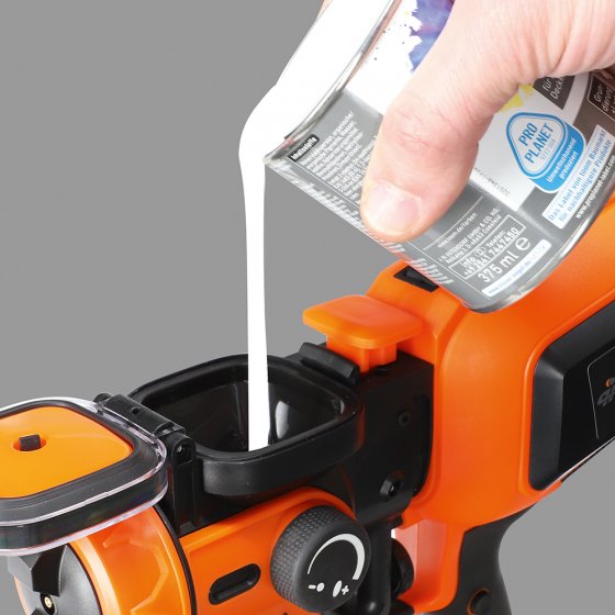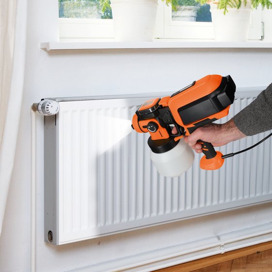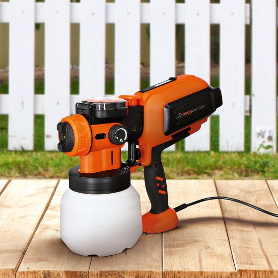 Une nouvelle couche de peinture ? Vous pouvez le faire vous-même aussi bien qu'un professionnel. Avec le PISTOLET À PEINTURE ÉLECTRIQUE de Profi-Partner. Murs, plafonds ou meubles de jardin – vaporiser la peinture est beaucoup plus efficace et donne un résultat plus homogène et plus propre ! Remplissez le grand réservoir XL de peinture, de vernis ou de lasure, choisissez une des deux buses de taille différente et réglez le jet (3 modes au choix). Appuyez sur le bouton, et c'est parti : avec un débit allant jusqu'à 1.100 ml/min, le liquide est projeté hors du pistolet de 550 W et recouvre les murs et les objets avec une homogénéité parfaite, sans trace de pinceau. Alimentation secteur 230 V. Dimensions (L x l x H) : env. 27 x 15 x 25 cm. Vous pouvez oublier les courbatures dues à la peinture au pinceau. Vous avez maintenant le partenaire idéal pour peindre de grandes surfaces, qui vous permet de réussir les travaux exigeants avec précision et assure la répartition homogène de la peinture – même dans les coins étroits.
