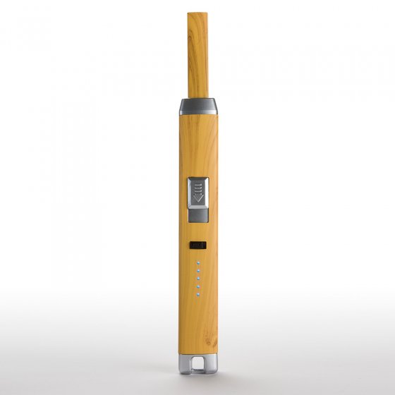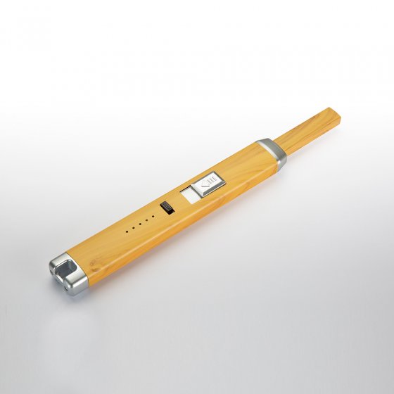 Met een open vlam, zoals bij een normale aansteker, kan het voor uw vingers best gevaarlijk zijn om windlichten of kaarsen die al een eindje opgebrand zijn aan te steken. Ga met deze PLASMA-AANSTEKER in aantrekkelijke hout-look voor veilig. In plaats van een vlam is er een elektrisch opgewekte lichtboog, die bestand is tegen iedere windstoot. De energie die daarvoor benodigd is, is afkomstig uit de geïntegreerde accu (op te laden met de meegeleverde USB-kabel). U hoeft dus nooit meer gas of benzine bij te vullen. Afmetingen (l x b x h): ca. 23 x 3 x 2 cm. Windgevoelige aanstekers met veiligheidsfunctie tegen per ongeluk afsteken zijn vanaf nu verleden tijd: nu kunt u met deze lichtboog naar buiten!
