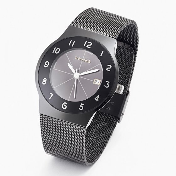 “wunderschöne flache wasserdichte Uhr, über die Solar-Funktion kann ich leider noch wenig sagen, seit ich sie trage haben wir nur nebeliges und trübes Wetter - da läuft sie dann mit Batterie. Armband sehr leicht auf die richtige Länge einzustellen”
