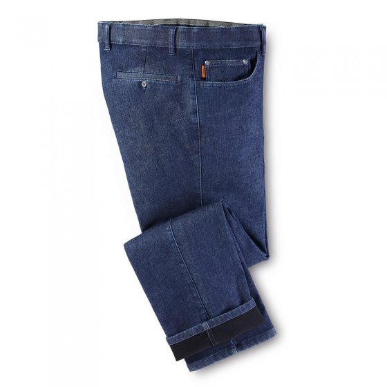 Regen, wind en ijzige kou: met de POLAR JEANS bent u de situatie altijd meester. Deze mooie klassieke jeans heeft namelijk veel functies. Dat begint bij de buitenkant van denim, die aan de buitenkant waterafstotend veredeld is. Aan de binnenkant is hij stevig verwerkt met een weefsel van microfleece: dat is heerlijk warm en is heel zacht voor de huid. Een fijne geïntegreerde membraan maakt de jeans bovendien wind- en waterdicht en ademend. Ondanks dat is de broek van 67% katoen, 22 % polyester, 9% polyurethaan en 2% Elastan heel comfortabel in het dragen. Uitgevoerd in swing-pocketmodel met achterzakken voorzien van knoop en veiligheidszak.