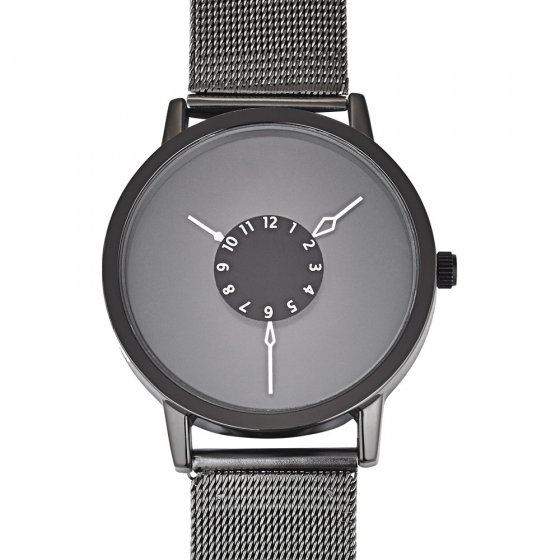 De wijzers lijken in de lucht te zweven. Het lijkt wel magie, maar eigenlijk zorgt de transparante schijf rond de wijzerplaat hiervoor. Laat uw vrienden versteld staan met dit POLSHORLOGE “INVERSO“! Een buitengewoon exemplaar met milanesearmband vervaardigd van geanodiseerd roestvrij staal in antraciet en precies kwartsuurwerk. Geniet van de magie van de tijd.