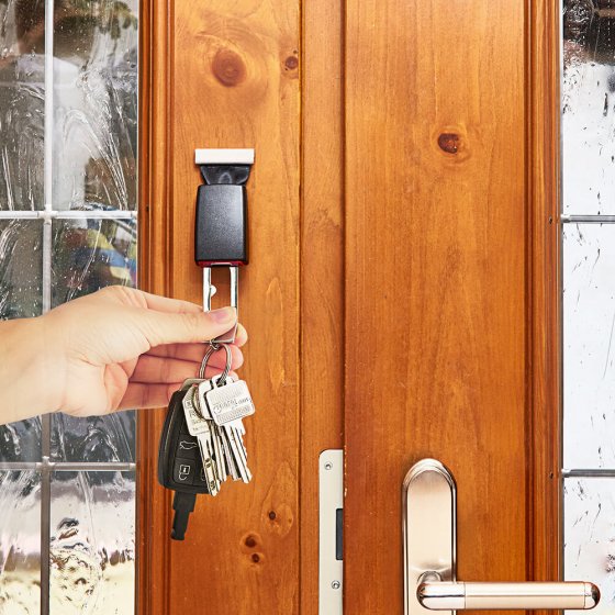 Plus besoin de chercher vos clés sur les étagères en désordre et dans de multiples poches. Avec le PORTE-CLÉS EN BOUCLE DE CEINTURE, ça fait toujours "clic" ! Le support mural en forme de cliquet de ceinture maintient l'accroche adaptée à laquelle sont attachées vos clés. Les clés se détachent facilement comme une ceinture de sécurité de voiture. Elles sont toujours à portée de main quand vous prenez la route ! Décapsuleur intégré dans l'accroche. Dimensions (L x l x H) : env. 13,5 x 5,5 x 2,5 cm. Livré avec patin autocollant pour montage mural. Alternativement, vous pouvez fixer le support avec des vis (non fournies). Vos clés sont toujours bien en vue !