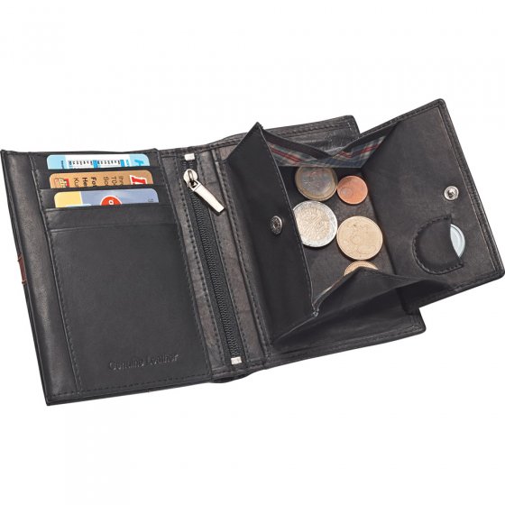 Pratiquement toutes les cartes de crédit et de débit, les nouvelles cartes d'identité et passeports sont aujourd'hui équipés d'une puce RFID sur laquelle les données du propriétaire de ces cartes sont stockées. Cette puce peut être lue à distance. Ce qui est censé faciliter le travail des autorités, vient malheureusement également faciliter celle des logiciels espions puisque leur lecture est également possible à distance. Avec notre PORTE-MONNAIE À PROTECTION ANTI-RFID, vous vous protégez : une pellicule anti-scanners intégrée empêche efficacement les signaux RFID de passer. De l'extérieur, ce porte-monnaie de très belle qualité semble tout à fait normal– et vous pouvez bien entendu l'utiliser tel quel. Le dessus est en cuir véritable (avec surpiqûres), la doublure est en tissu à carreaux. Ce porte-monnaie possède un total de 11 fentes à cartes, 2 poches à billets, un compartiment à monnaie, 1 compartiment à filet et une poche zippée. Dans la poche à monnaie se trouve un jeton de caddie. Dim. (L x l x h) : env. 2,5 x 10 x 13 cm. Mettez enfin un terme au vol de données !