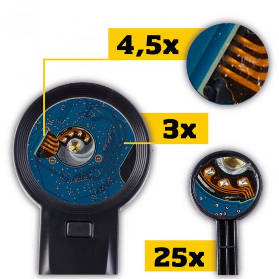 - Verschillende vergrotingen: 3 x / 4,5 x / 25 x