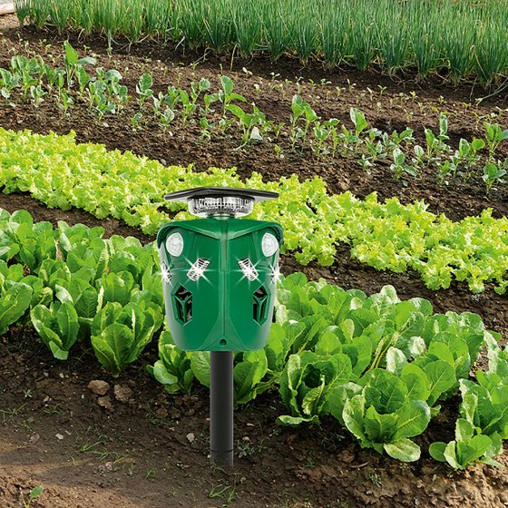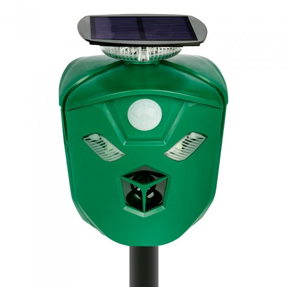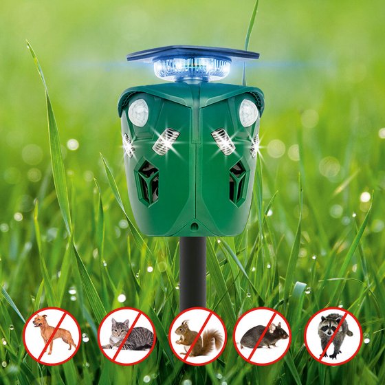 Vous voulez éviter que les chiens ou les chats fassent leurs besoins dans votre potager ou que les oiseaux mangent toutes vos graines ? Placez le RÉPULSIF ANIMAUX 360° À ULTRASON sur votre terrain ! Dès que l'un des 3 capteurs à infrarouge détecte un mouvement, l'appareil émet des ondes ultrasoniques et des éclairs lumineux ; il peut aussi, si vous le choisissez, émettre une alarme sonore. L'avantage de cet « arsenal XL » : non seulement il repousse les animaux, mais il chasse aussi les visiteurs humains indésirables qui essaient de ne pas attirer l'attention. Dimensions (L x l x P) : env. 48 x 12 x 12 cm. Alimentation par batterie, rechargeable par panneau solaire ou par USB (câble de charge inclus). Transformez votre jardin en zone restreinte !
