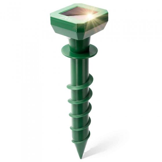 Les campagnols peuvent faire beaucoup de dégâts dans un jardin : ils rongent les racines et les bulbes et endommagent les plates-bandes et les pelouses. Le RÉPULSIF SOLAIRE ANTI-CAMPAGNOLS est la solution – il émet des vibrations qui agissent comme des ondes sismiques et qui gênent les animaux fouisseurs, lesquels prennent le large. Au cours de 24 heures, le répulsif change plusieurs fois le mode de vibration, pour éviter l'accoutumance des animaux au bourdonnement. Grâce à son filetage, il pénètre facilement dans le sol en se vissant pratiquement tout seul dans la terre. Fonctionne avec une batterie et un panneau solaire. Dimensions par piquet (Ø x L) : env. 7 x 27 cm. Déclarez la guerre aux animaux fouisseurs !