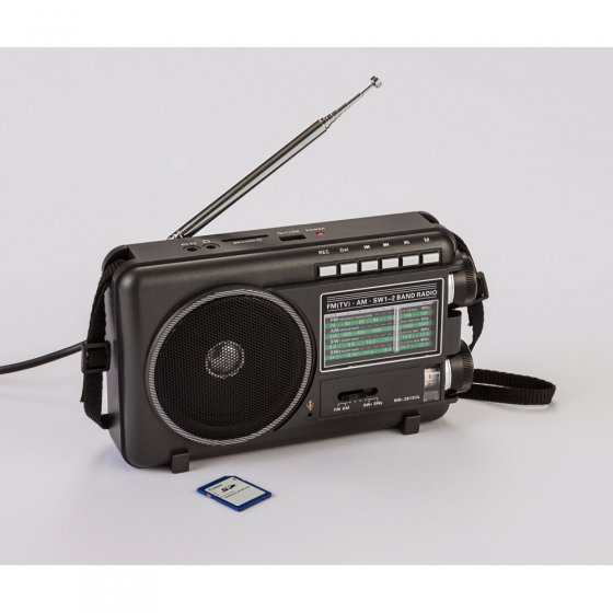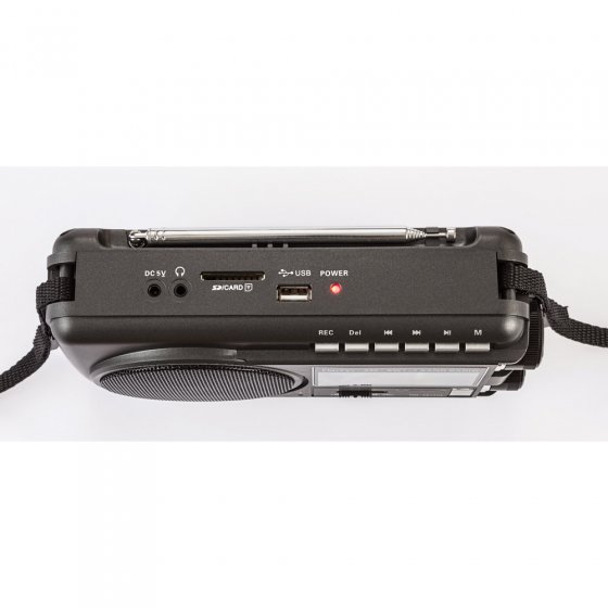 Vous vous sentez parfois dépassé par les progrès de la technologie ? Vous ne le serez plus grâce à cette RADIO ENREGISTREUR polyvalente et facile à utiliser ! Elle est équipée des toutes dernières innovations, mais elle fonctionne tout simplement en appuyant sur des touches clairement identifiées à taille "humaine" ! Vous sélectionnerez sans avoir à chercher longtemps la FM ou les MW/SW, vous enregistrerez vos émissions de radio sur une clé USB ou une carte SD (vendues séparément) ou vous lirez celles-ci en qualité hifi. Grâce au microphone intégré, vous pourrez même enregistrer vos propres concerts ! Ce petit appareil génial est également idéal en déplacement : sa batterie au lithium intégrée et rechargeable vous assure une écoute sans fil pendant des heures. Il fonctionne également avec 4 piles AA (vendues séparément). Radio équipée d'une antenne télescopique, d'une fente pour carte SD, d'une prise USB, d'une dragonne et d'un appareil de recharge sur secteur de 230V. Dim. compactes : env. 19 x 12 x 6 cm. Un appareil multifonctions dernière génération qui réconciliera même les plus réticents avec la technologie moderne !