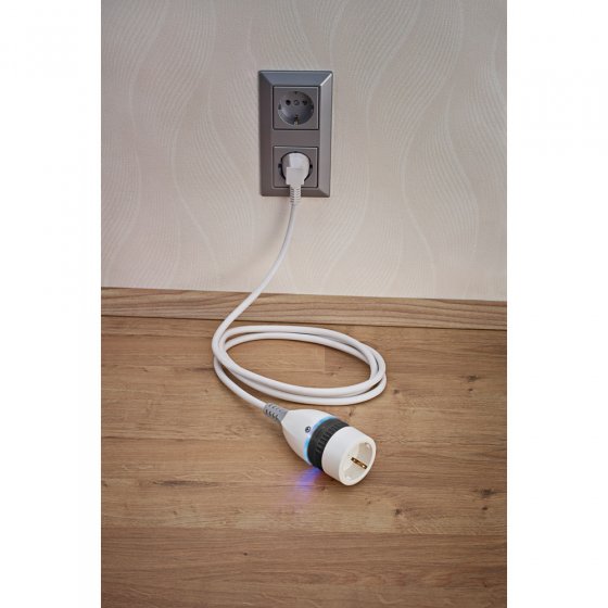 Les appareils électriques en veille consomment beaucoup d’électricité à la longue : vous devriez donc couper l’alimentation de ces appareils quand vous ne vous en servez pas. Mais à force d’enlever et de remettre les prises, cela abîme les prises et les cordons d’alimentation. Utilisez plutôt notre RALLONGE À COMMUTATEUR ROTATIF pour l’intérieur de la maison : un geste suffit pour couper le courant, c’est idéal pour les prises difficilement accessibles. L’anneau lumineux bleu indique si le courant passe. Câble de 1,5 mm (230 V). Longueur du câble : env. 1,4 m. Sécurité enfant incluse. Fini le gaspillage d’électricité : réduisez votre consommation immédiatement et d’un seul geste !