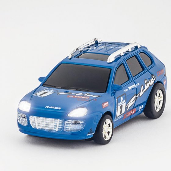 geeft toch gas als een grote! Snel, zeer wendbaar en direct klaar voor gebruik – gewoon opladen en wegracen. Leuk extra effect: in vooruitgang lichten de schijnwerpers op, in achteruitgang de achterlichten! Met 2 kanaals-afstandsbediening