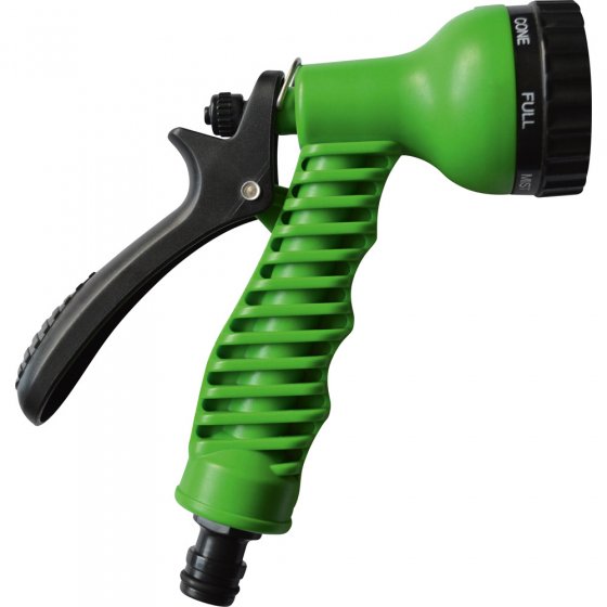 Zolang u de tuinslang niet gebruikt, is het altijd praktisch als deze zo min mogelijk plaats in neemt. De REKBARE TUINSLANG is opgerold slechts een klein hoopje slang, maar als u de kraan opengezet, kan deze wel 3 keer zo lang worden! Het spuitpistool met 6 verschillende instellingen eraan gemonteerd – geeft altijd de passende water-“straal”, ongeacht of u de bloemen giet of besproeit, de vijver opvult of de tuinmeubelen afspuit. Universele aansluiting (een kraanadapter voor M24, binnenschroefdraad, is apart verkrijgbaar), slanglengte: minimaal ca. 10 m, maximaal ca. 30 m. Vertrouw op de kleine tuinslang met veel perspectieven!