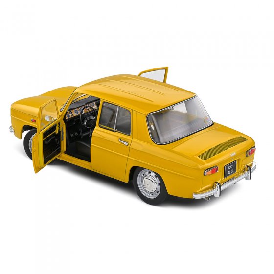 Met een lengte van slechts 3,99 meter veroverde de Renault 8 begin jaren 60 de harten van familiemannen: vier portieren en een grote kofferbak plus achterwielaandrijving vormden een aantrekkelijke combinatie. De speciale edities 'Gordini' met 86 pk en 'S' met 53 pk trokken later ook mensen aan met behoorlijk indrukwekkende prestaties. De RENAULT 8S is nu verkrijgbaar als 1:18-model. Net als het origineel is hij voorzien van extra koplampen en de lichtgele lakkleur die typerend is voor de S-versie. De voorportieren kunnen worden geopend en ook de besturing is functioneel. Afmetingen (l x b x h): ca. 22 x 8 x 8 cm. Voor alle liefhebbers van auto's uit de jaren 60 en 70 is deze Franse 'raceauto' een must!