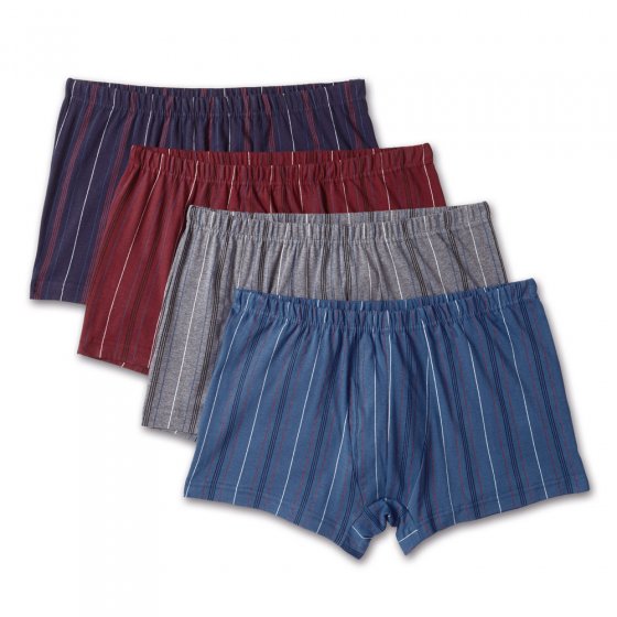Deze RETRO BOXERSHORT MET STREEPPRINT sluit nauw aan, maar is ook zo elastisch dat u veel bewegingsvrijheid geniet! En omdat het voorste gedeelte is verdubbeld met single jersey en er geen vervelende naad aan de achterkant zit, knelt of drukt hij niet. De mix van 95% katoen en 5% elastan is zacht en ademend en zeer comfortabel om te dragen, vooral in de zomer. De short met tunnelband en chic streepdessin wordt in gesorteerde kleuren geleverd in een praktische pak van 4. Heerlijke boxershorts om elke dag te dragen!