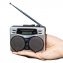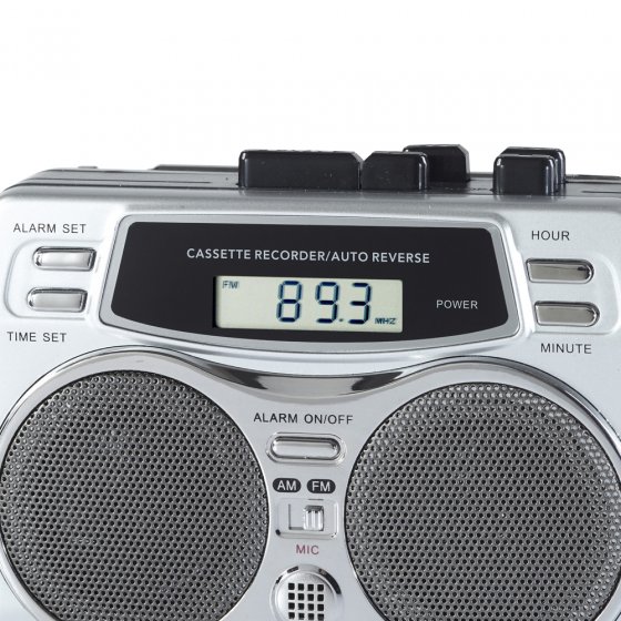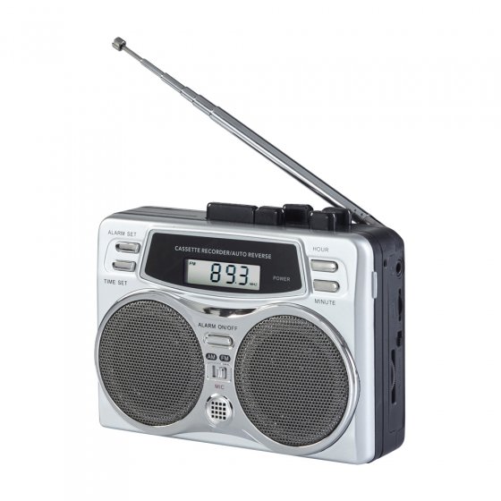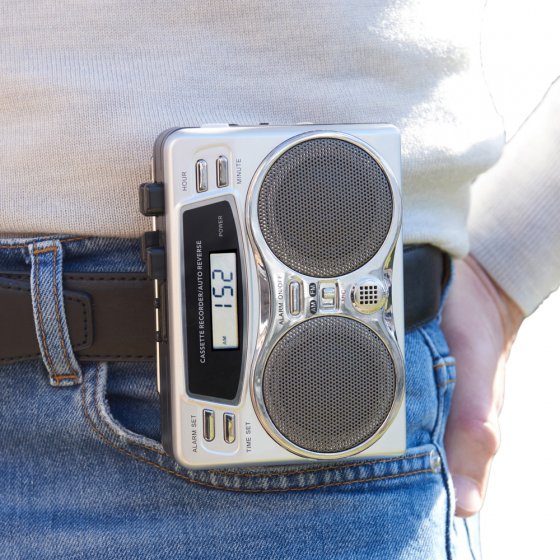 Voordat er cd- en mp3-spelers bestonden, luisterden mensen onderweg naar muziek met een draagbare cassetterecorder. Dat kan nu weer: de Retro-Cassettespeler brengt het tijdperk van de audiocassettes weer tot leven – voor een betaalbare jubileumprijs! Dankzij een geïntegreerde FM/AM-ontvanger kan het ook radiomuziek afspelen en opnemen; microfoonopnames zijn ook mogelijk. Het ontwerp van de cassettespeler, die ongeveer zo groot is als een pocketboek, is gebaseerd op het uiterlijk van de grote gettoblaster. Hij is verkrijgbaar in traditioneel zilver, maar ook in zwart en blauw. Werkt op 2 AA-batterijen (afzonderlijk verkrijgbaar). Afmetingen (b x h x d): ca. 12 x 9 x 4 cm. Blijf 'forever young'!