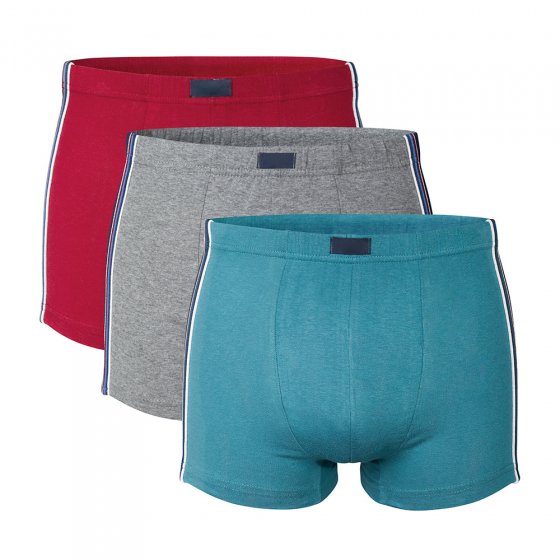 Wie het graag iets modieuzer heeft, zal aangenaam verrast zijn door deze RETROSHORT MET CONTRASTEN in een set van 3! De kleurencombinatie zorgt met de elastisch uitgevoerde bies voor een leuk effect. Het dubbel verwerkte front van single-jersey is zonder gulp uitgevoerd en sluit zacht aan. Het ventilerende materiaal van 95% katoen en 5% elastan is betrouwbaar elastisch, net als de tunnelband. Zit rondom behaaglijk!
