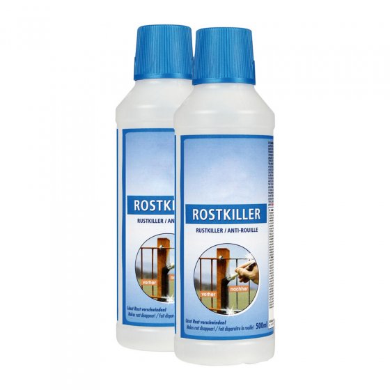 Makkelijker kan haast niet: deze sensationele ROESTVERWIJDERAAR verwijdert niet alleen roest, maar brengt tegelijkertijd ook een stabiele, overschilderbare beschermlaag aan! De dagen dat u eerst het roest van balustrades, omheiningen, metalen auto- en fietsonderdelen, enz. moest verwijderen voordat u kon schilderen zijn voorbij! Vandaag brengt u met een normale kwast de roestverwijderaar op alle metalen oppervlakken aan. Het product bindt het roest en brengt tevens voor een duurzame, roestbestendige en overschilderbare grondlaag aan! Een geweldige uitvinding, gemaakt in Duitsland, waarmee u veel tijd en moeite bespaart! Inhoud: 2 x 500 ml.
