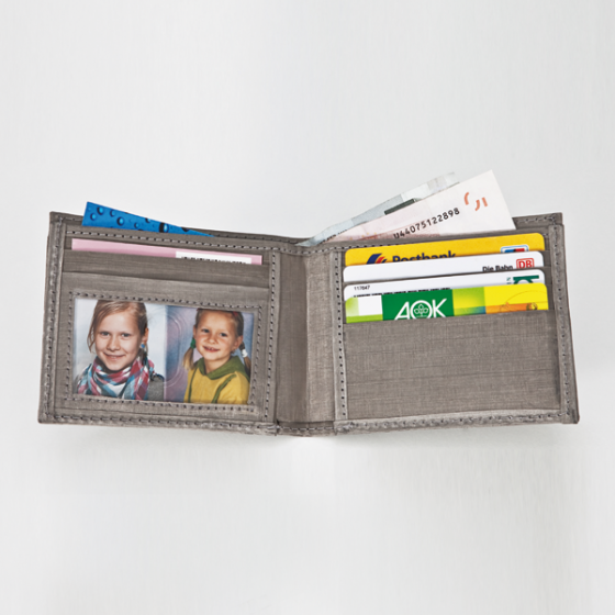 in gebruik, beschikt deze zilverkleurige portemonnee over een optimale indeling: 2 papiervakken, 6 credit card vakken, 2 insteekvakken, waarvan 1 met kijkvenster. Maten gesloten: 12 x 9 x 1 cm. Een zeer efficiënte voorzorgsmaatregelen om misbruik van gegevens en diefstal van identiteittegen te gaan!