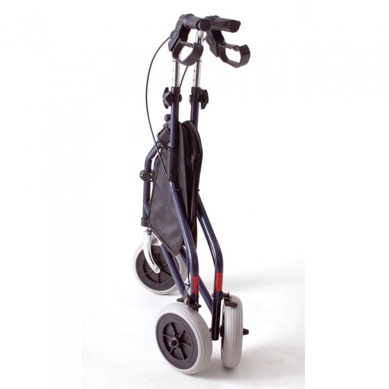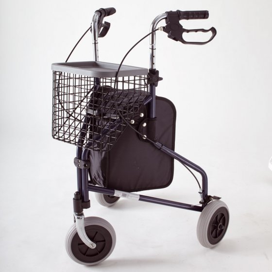 De rollator '3-wieler' is uitgerust met anatomisch gevormde handgrepen. De ergonomische rem is bijzonder eenvoudig te bedienen; Om te vergrendelen, drukt u gewoon de remhendel naar beneden. Tot de standaarduitrusting behoren ook de in hoogte verstelbare duwbeugels en banden. Het stabiele frame is gemaakt van stalen buizen en is opvouwbaar. EXTRA'S: mand, tas, dienblad en luchtwielen, anatomisch gevormde handvatten, opvouwbaar om ruimte te besparen. Kleur: blauw.