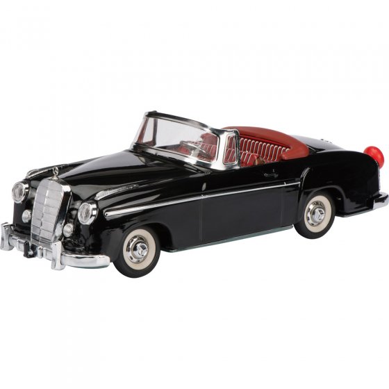 Tinnen speelgoed auto’s nemen generaties van kleine en grote auto fans in de ban: Terwijl de kleine fans de robuustheid waarderen,genieten de grote fans van de details en functionaliteit. Als tweede editie van het klassieke model van 1960 is nu de ROLLFIX MERCEDES CABRIOLET 220 S in beperkte oplage van 1000 wereldwijde exemplaren verschenen – hij heeft een beweegbare vooras en kan rijden door een verende automatiek. De bodemplaat wordt gelithografeerd. Het model is een replica van de originele kartonnen vanaf 1960 uitgeleverd. Afmetingen (L x B x H): ca.26 x 10 x 9 cm. Bij het uitpakken van deze zeldzaamheid gaan niet alleen de harten van verzamelaars hoger slaan!