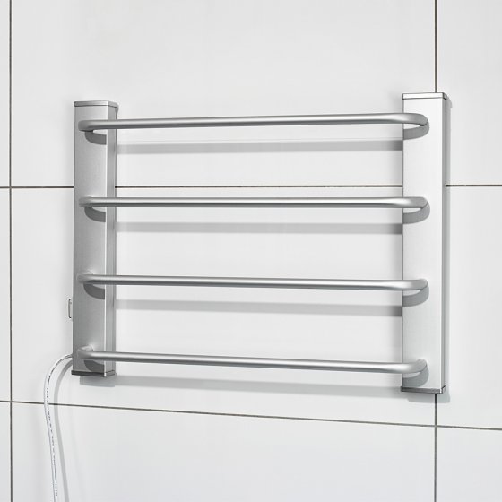 Plus besoin de séjourner dans des hôtels de luxe pour profiter chaque jour de serviettes moelleuses et bien chaudes ! À la maison, il vous suffit d'allumer le SÈCHE-SERVIETTES ÉLECTRIQUE avant de prendre votre douche ou votre bain : des serviettes en éponge agréablement chaudes vous attendent à la sortie ! Reposez-les ensuite sur l'une des quatre barres en aluminium brossé pour les faire sécher rapidement. Les serviettes retenant longtemps la chaleur, vous réalisez des économies d'énergie ! Cet appareil léger et compact est idéal pour les petites salles de bain. Il vous suffit de l'allumer et de l'éteindre lorsque vous en avez besoin : sans thermostat, il fait également office de chauffage d'appoint. Montage facile au mur grâce au matériel de fixation et au gabarit fournis. Dimensions : env. 9 x 51 x 37 cm. 230 V, 60 W. Découvrez sans tarder cette innovation bien-être !
