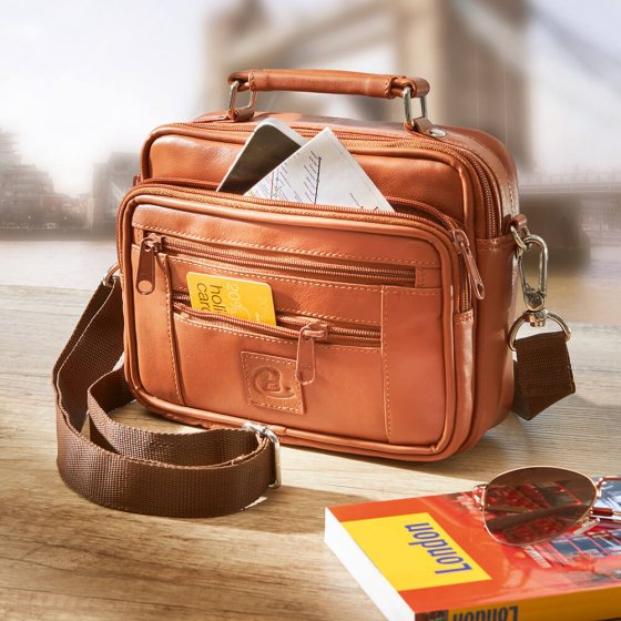 Le SAC DE CUIR HOMME à porter sur l'épaule est un mélange réussi de city bag et de sac de poignet haut de gamme. Malgré sa taille compacte, il est spacieux et présente diverses poches zippées. Avec lui, rien ne se perd ! L'étui à lunettes, le porte-monnaie et le peigne y trouvent une place, de même que le guide de voyage ou une petite bouteille d'eau. Le compartiment principal à l'intérieur comprend une poche pour smartphone. Matière : cuir de mouton. Dimensions (L x l x H, avec poignée) : env. 22 x 9 x 21 cm. Avec ce sac noble, vous êtes parfaitement équipé pour une petite sortie en ville ou une excursion d'une journée !