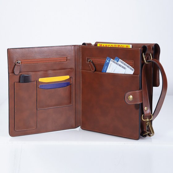 Pendant les voyages, on a besoin de tout avoir à portée de main ! À cet effet, la SACOCHE HOMME EN CUIR VACHETTE ANTI-RFID est parfaitement conçue : la poche qui s'ouvre sur le devant est dotée de divers emplacements qui permettent un accès rapide aux passeports, cartes bancaires ou réservations d'hôtel. La nouvelle protection anti-RFID empêche toute lecture non autorisée des cartes. Le compartiment arrière spacieux accueille aisément les guides touristiques, l'appareil photo et bien d'autres choses encore. Bandoulière amovible. Dimensions (H x l x P) : env. 24 x 18 x 6 cm. Pur cuir vachette avec ferrures imitation laiton. Un sac vraiment spécial pour les hommes : sûr, pratique et indémodable !