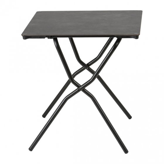 Les meubles de jardin sont constamment soumis à l'humidité et aux rayons ultraviolets agressifs. La table pliante Lafuma résiste à la corrosion, aux rayures, à l'usure et aux chocs. Sans barre transversale gênante pour les jambes. Couleur : gris. Matière : acier (structure tube), HPL (plateau). Dimensions (l x H x P) : 64 x 72,5 x 69 cm.