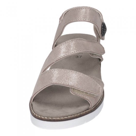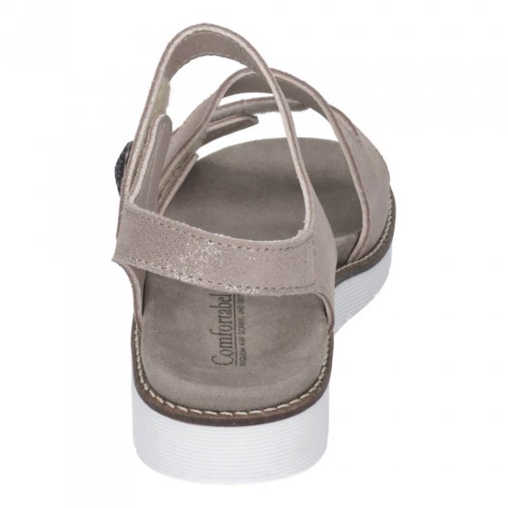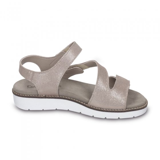 Voici des sandales qui brillent sous plus d'un aspect. Le cuir de qualité scintille au soleil. Les fines lanières diagonales maintiennent et affinent le pied en laissant l'air circuler. Le talon moderne en blanc complète à merveille le look estival. Dessus : cuir vachette. Semelle intérieure amovible. Semelle d'usure TR antidérapante. Largeur G. Ajustement individuel par patte auto-agrippante.