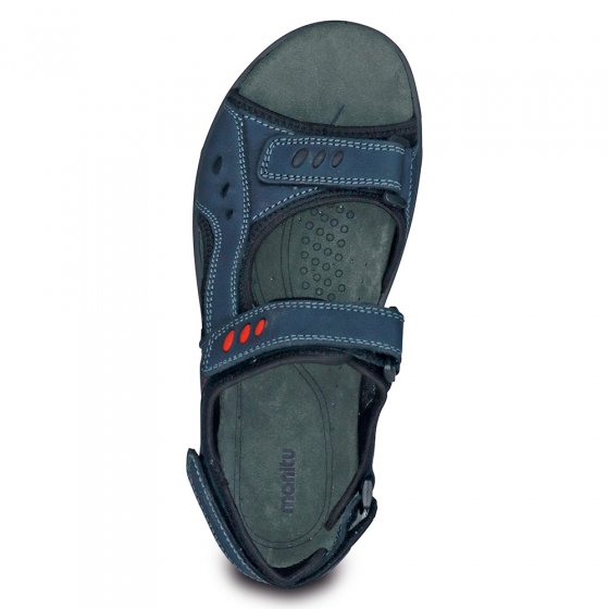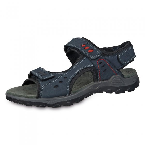 Légères et aérées, avec une bonne adhérence au sol et un ajustement individuel : les sandales homme plaisent pour leur belle couleur bleue et les matériaux de qualité. La combinaison d'une semelle intérieure en cuir et d'une semelle d'usure en PU assure un maintien parfait et le confort de marche. Autre avantage de ces sandales : les fermetures auto-agrippantes, qui permettent un ajustement exact sur tout le pied. Largeur normale. Matière : cuir nubuck, textile (dessus), doublure textile, semelle intérieure en cuir, semelle d'usure en PU.
