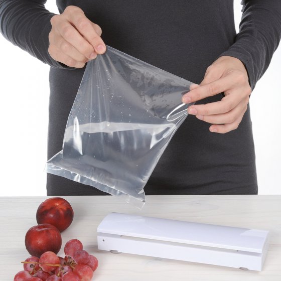 Voir des aliments s’abîmer ou perdre de leur saveur vous fait mal au coeur ? Conservez plus longtemps l’arôme de votre café ou de votre thé, le croustillant de vos biscuits apéritif ou le moelleux du pain frais ! La SCELLEUSE DE SACHETS PLASTIQUE scelle parfaitement les sachets ouverts et sachets en plastique du commerce. Il suffit de poser le côté ouvert sur l’appareil, de le refermer et c’est fait ! Le bord du sachet est scellé et étanche à l’air en quelques secondes à peine. Tout est bien conditionné de manière hygiénique et en un éclair. Idéal également pour conserver vos documents, lettres, photos etc. bien au sec. Longueur : env. 16 cm. Fonctionne avec 6 piles AA (vendues séparément) et donc partout où vous le souhaitez !