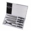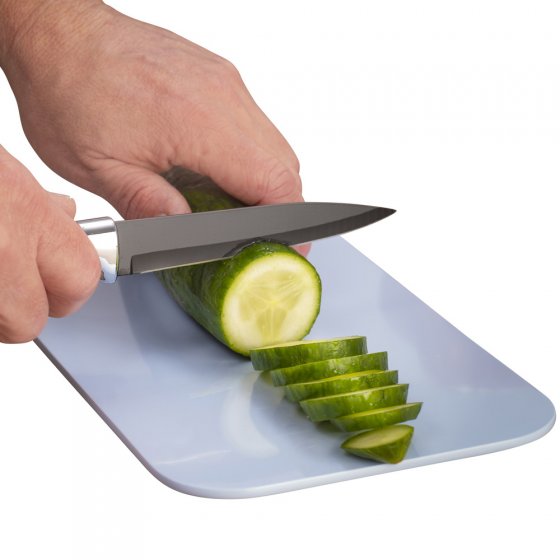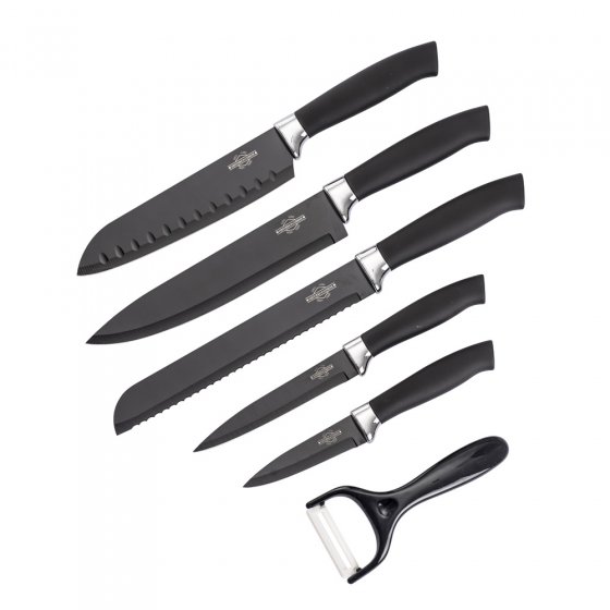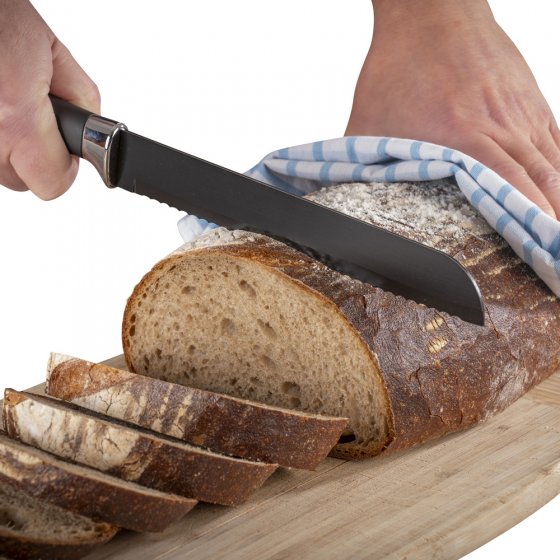 Notre SET DE COUTEAUX « HISTOIRE DE CUISINE » n’a pas été baptisé ainsi par hasard ! Car pour les personnes qui ont des exigences élevées en matière de cuisine, ces "outils de base" sont absolument indispensables. En commençant par le couteau de chef, le couteau de cuisine et le couteau à pain avec leurs lames de 20 cm de long, en passant par le couteau utilitaire avec une longueur de lame de 12 cm, le couteau d’office avec une longueur de lame de 8 cm jusqu’à l’éplucheur économe avec sa lame en céramique. Les lames des couteaux sont fabriquées en acier inoxydable au bel effet granit décoratif et les manches ergonomiques sont en synthétique de qualité, aspect bois. Vous profiterez de ces couteaux de longues années durant.