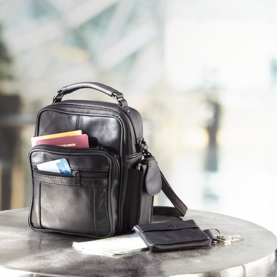 Reizen is één van de mooiste manieren om uw horizonten te verruimen. Daarom doen wij u de SET MET TAS EN SLEUTELETUI VOOR HEREN cadeau. In de ruime schoudertas met 5 vakken met ritssluiting geeft u alles een plaatsje: van uw identiteitskaart, tot uw digitale camera en reisgids. Zeer comfortabel om te dragen en veilig – zodat u zeker alle spullen bij u hebt die u nodig hebt, terwijl u de mooiste plekken ter wereld verkent.