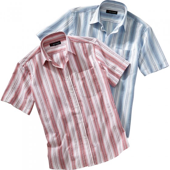 Door zijn golvende weefsel ligt de seersuckerstof niet op het lichaam, zodat een optimale luchtcirculatie mogelijk is. Heerlijk licht en huidvriendelijk in dragen, zijn deze korte mouwenhemden ook super eenvoudig schoon te maken: Gewoon wassen, laten drogen en gelijk aan trekken! Strijken is overbodig. Ideaal voor vakanties en reizen! Uitgesproken gecombineerd sterke lengte streep patroon in rood / wit en blauw / wit. SET VAN 2 SEERSUCKER STREEPOVERHEMDEN voor een super set prijs voor „koele“ rekenaars! 65% katoen, 35% polyester, wasbaar in de machine, Strijkvrij. Kent kraag, borstzak met knoop, comfort plooien in de rug, afgeronde onderzijde. Tot kraagmaat 47/48.