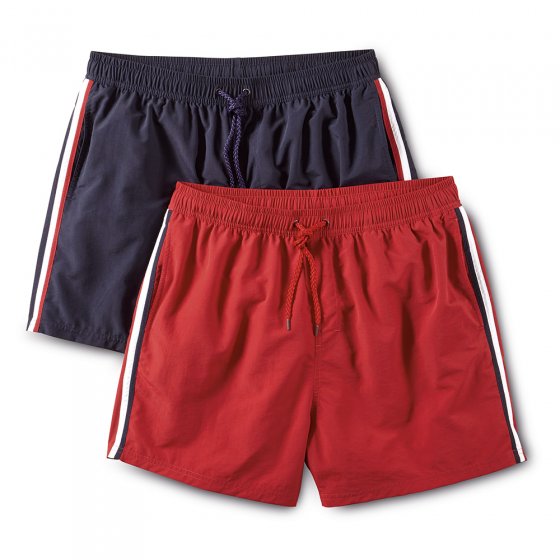 Au lac, à la piscine ou à la mer : quoi de plus agréable qu’un plongeon dans l’eau fraîche quand il fait chaud ? Il ne manque plus à votre bonheur que ces shorts de bain. Légers et agréables à porter, ils sèchent en un rien de temps après la baignade. Les finitions sont très astucieuses, avec poches doublées de mesh et poche arrière à rabat auto-agrippant avec œillet d’écoulement de l’eau. Les shorts ont un slip intérieur en mesh pour assurer le bon maintien et une ceinture élastiquée avec cordon de réglage. L’élégance est assurée par les couleurs maritimes et les bandes latérales. 100 % polyamide (nylon) avec doublure 100 % polyester. Lot pratique de 2 pour de nombreuses journées de baignade !