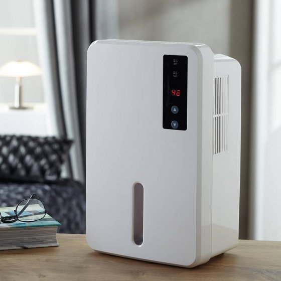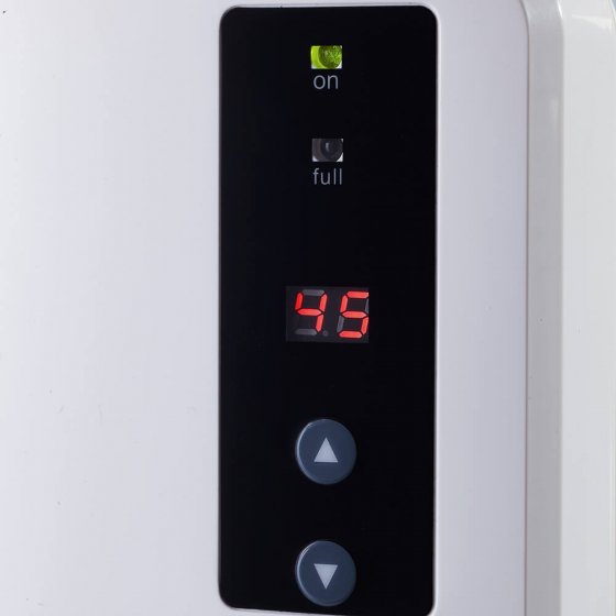 Vanaf 65% relatieve luchtvochtigheid stijgt het gevaar op schimmelvorming. De SLIMME LUCHTONTVOCHTIGER reguleert de luchtvochtigheid en past deze aan de gewenste behoefte aan. Tegelijkertijd maakt hij de lucht vrij van bacteriën en onaangename geurtjes. Bijzonder effectief in kelders, keukens, bad- en slaapkamers: de ingebouwde vochtigheidssensor zorgt voor een constante vochtigheidsgraad. De gewenste luchtvochtigheid is vrij instelbaar. Bij een vol waterreservoir schakelt het apparaat automatisch uit. Afmetingen (b x h x d): ca. 18 x 29 x 14 cm. Ontvochtigingsvermogen: 400 ml /dag. Vermogen: 60 W. Overzichtelijk te bedienen op het lcd-display. Voor een aangenaam klimaat in het hele huis.