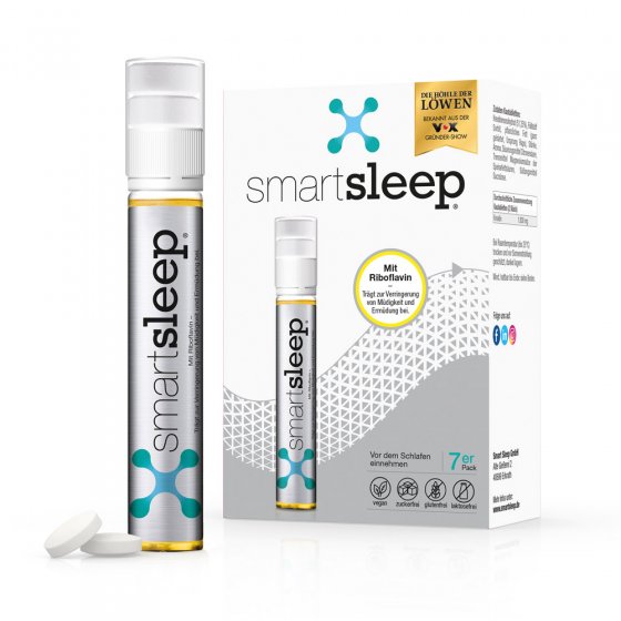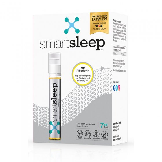Moet u soms noodgedwongen met weinig slaap toe kunnen? SMARTSLEEP®, een oorspronkelijk voor topsporters en zakenlieden ontwikkeld voedingssupplement, zorgt ervoor dat u optimaal presteert bij weinig slaap. Neem voor het slapengaan gewoon 2 kauwtabletten en drink de bijbehorende ampul weg. De werkzame stoffen riboflavine en niacine dragen bij aan het verminderen van de vermoeidheid, het daarin voorkomende zink en pantotheenzuur helpen uw gestel bij het behoud van de normale cognitieve capaciteit. Smartsleep® is suiker-, gluten- en lactosevrij en wordt in Duitsland geproduceerd. Inhoud: 7 ampullen (met elk 25 ml vloeistof en 2 kauwtabletten). Slaap slimmer.