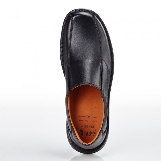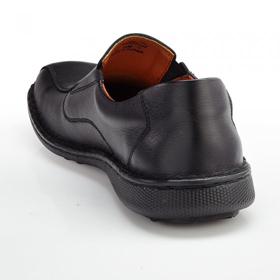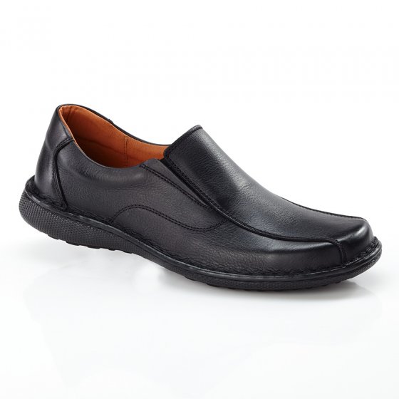 De 'SOFTWALK' COMFORT-INSTAPPERS zijn schoenen waar u op kunt vertrouwen. Tijdloos mooi in model en kleur, zijn de instappers van robuust rundleer geschikt voor elke gelegenheid en zijn ze aangenaam voor de voeten. Stretchinzetten opzij zorgen ervoor dat de schoen bij de wreef elastisch zit en niet knelt. De zacht verdikte binnenzool heeft een schokdempend effect, terwijl de voet op de flexibele loopzool comfortabel afrolt. Ook de schachtrand is zacht verdikt, zodat er niets schuurt of zeer doet. Mooie siernaden geven de schoenen van echt leer een modieus accent. De antislipzool van kunststof is stevig doorgestikt.