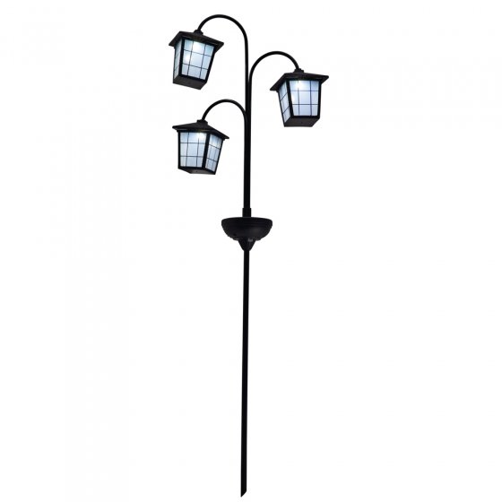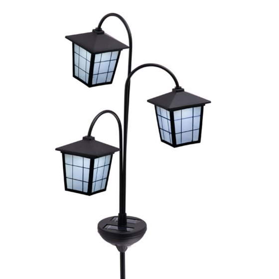 Met deze SOLAR-LED-LANTAREN kunt u in uw tuin in een handomdraai een drievoudig lichtaccent zetten: steek gewoon de weersbestendige metalen spies in de aarde of in een plantenbak al waar het u het beste uitkomt. Dankzij een hoogwaardig zonnepaneel en een krachtige accu geven de led’s in het huis van deze 3 klassieke stadslantarens, na het vallen van nacht, tot wel 8 uur lang helder wit licht. Met geïntegreerde schemersensor en handmatige aan-/uitschakelaar. Hoogte: ca. 82 cm, breedte van het lantarenhuis ca. 8 cm. Heeft u een voorliefde voor stijlvolle buitenverlichting, dan verdient deze lantaren zeker een plaatsje in uw tuin of op uw balkon!